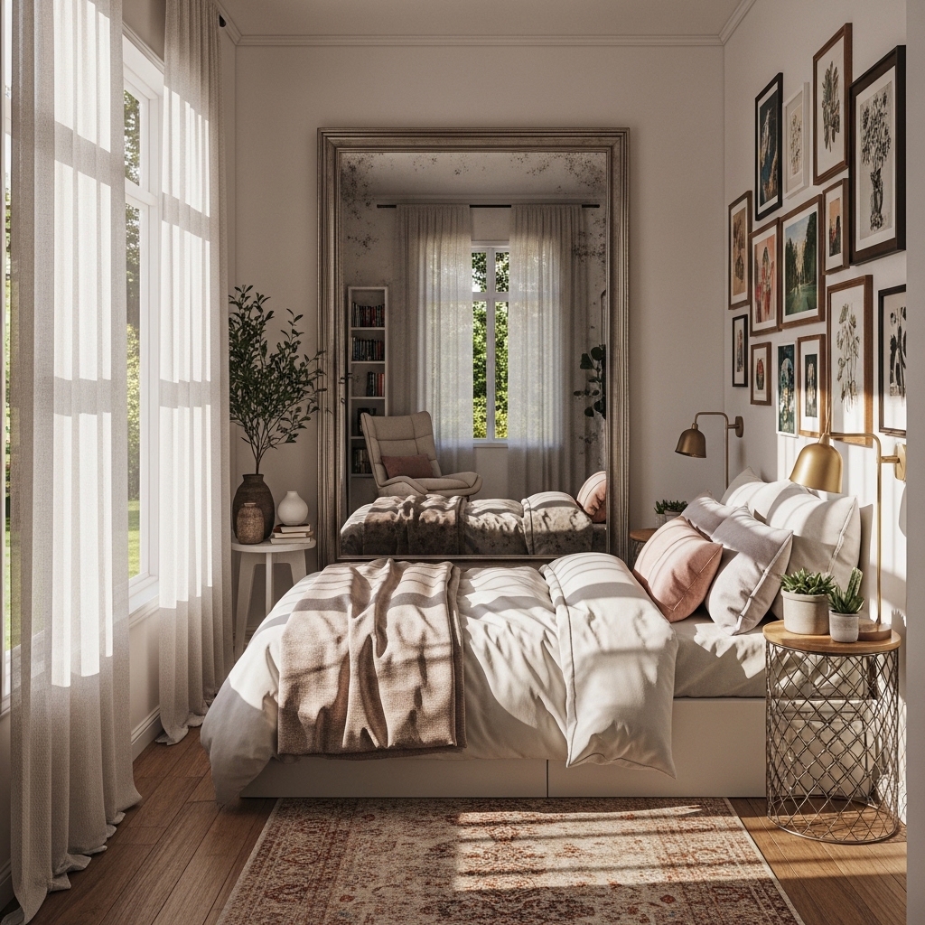 Incorporating mirrors into your bedroom design can greatly enhance the sense of space. Large mirrors reflect light and create the illusion of depth, making the room feel larger and more open. Position mirrors strategically across from windows to maximize natural light, and consider mirrored furniture for an added touch of elegance.