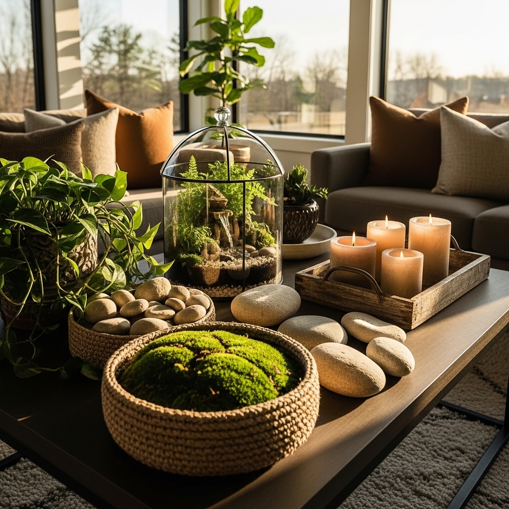 Incorporating natural elements into your coffee table design adds warmth and a touch of the outdoors. Use materials like wood, stone, or wicker to create a rustic feel. Adding plants, such as succulents or small ferns, can enhance this natural vibe. This approach promotes a serene atmosphere, making your living space feel more connected to nature.