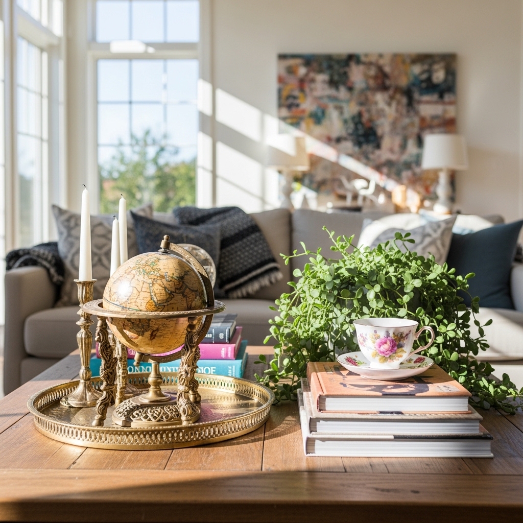 Layering is a favorite technique among designers for creating depth and interest. Start with a stack of coffee table books as a base, then add a decorative tray on top to hold smaller items like candles or coasters. Finish off with a small plant or a unique object to bring life to the arrangement. This method not only looks chic but also organizes your items neatly.