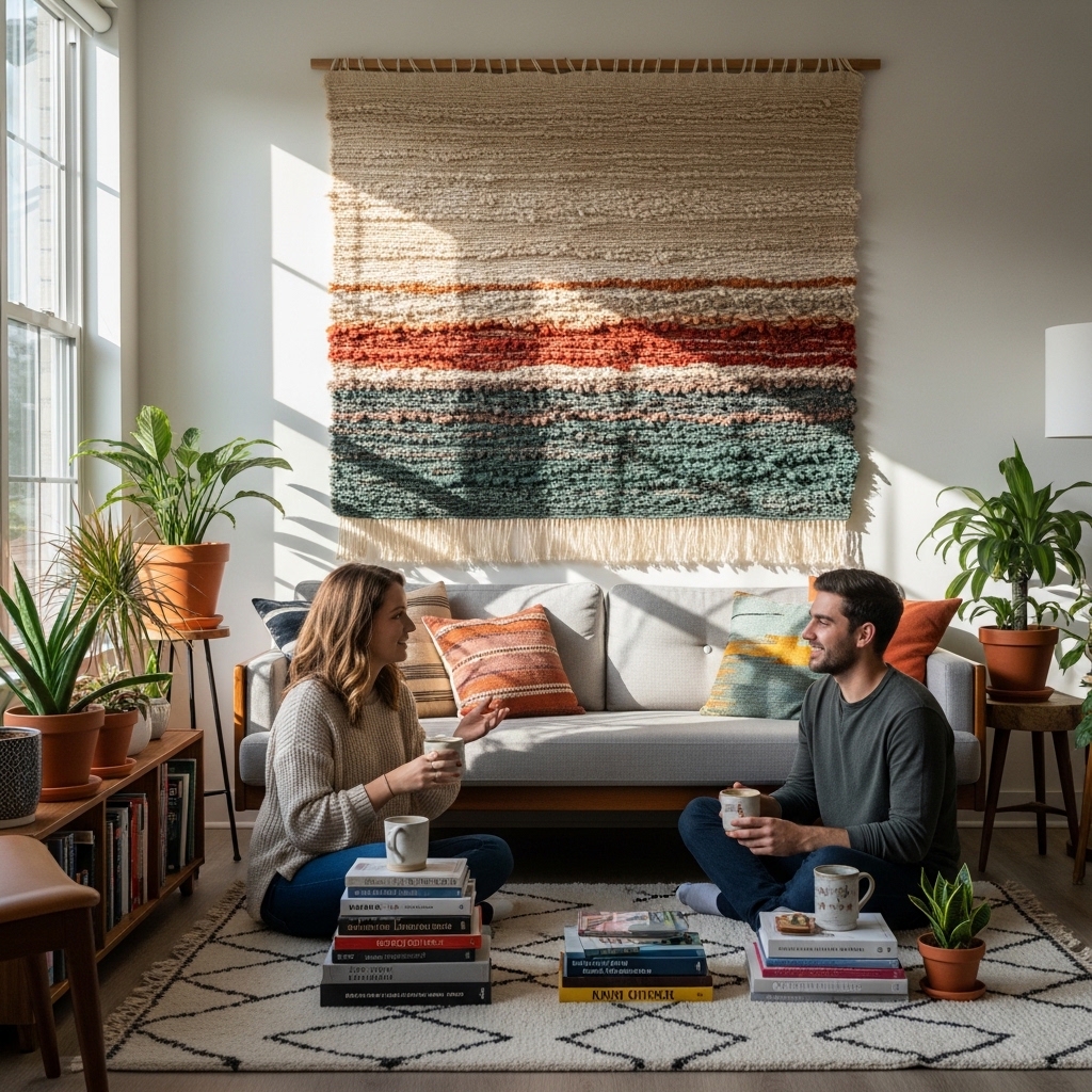 Textured fabric wall hangings are a great way to introduce softness and warmth into your decor. These pieces can range from macrame to woven textiles and are perfect for adding a bohemian or cozy vibe to your space. They provide a tactile experience and can be used to soften stark walls, making any room feel more inviting.
