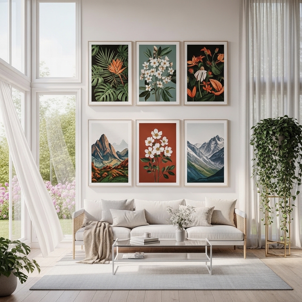 Nature-inspired print series are perfect for bringing the outdoors inside. From botanical illustrations to serene landscapes, these prints can create a calming effect in your home. Opt for a cohesive color palette to tie the series together, and consider mixing different styles, such as watercolor with photography, to add interest and depth to your decor.
