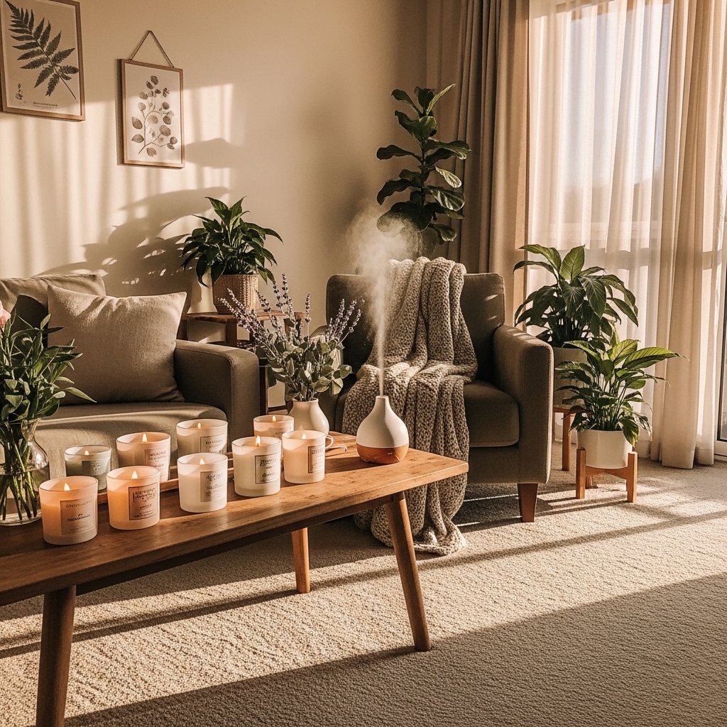 Incorporating aromatherapy can enhance the relaxing atmosphere of your living room. Use essential oil diffusers or scented candles to fill the space with calming fragrances like lavender, chamomile, or sandalwood. The right scents can help reduce stress and promote a relaxing environment, making your living room a perfect sanctuary.