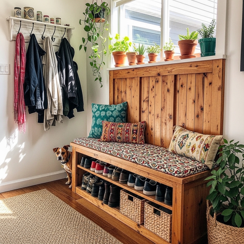 A multi-functional bench serves as both a seating area and storage solution. Look for benches that have built-in compartments or shelves where you can store shoes, bags, or even seasonal items. This not only keeps your entryway clutter-free but also provides a convenient place to sit while putting on or taking off shoes. Choose a design that complements your decor for added visual appeal.
