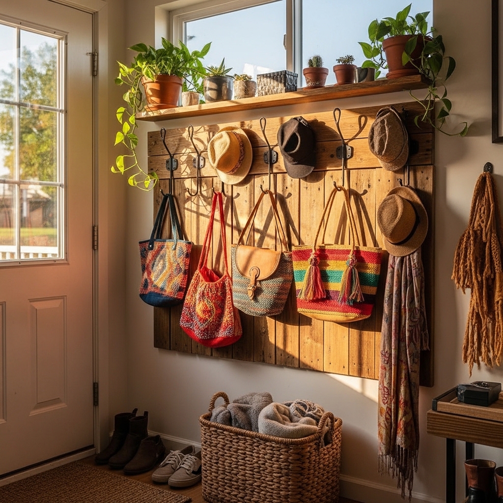 Hooks and racks are essential for managing coats, bags, and accessories in a small entryway. Installing a series of hooks on the wall can free up floor space and keep items organized and easily accessible. Opt for decorative hooks to add character to your space. You can also use a vertical rack for umbrellas or hats, keeping everything off the ground and within reach.