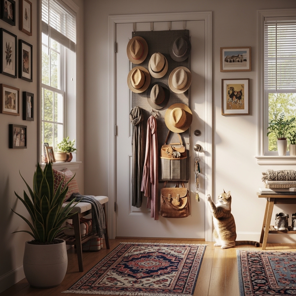 Over-the-door organizers are a smart way to maximize storage without sacrificing floor space. These organizers can hold shoes, accessories, or even cleaning supplies, making them incredibly versatile. They come in various designs, from simple pockets to more intricate shelving. Perfect for small homes, these organizers keep your items visible and accessible while decluttering your entryway.