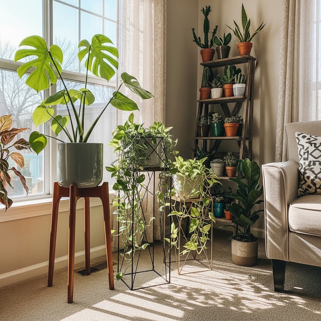 Using plant stands can elevate your greenery, literally and figuratively. They add height and dimension to your indoor garden, making it visually appealing. Choose stands that complement your decor style, whether it’s modern, rustic, or bohemian. This not only showcases your plants but also enhances the overall aesthetic of your home.