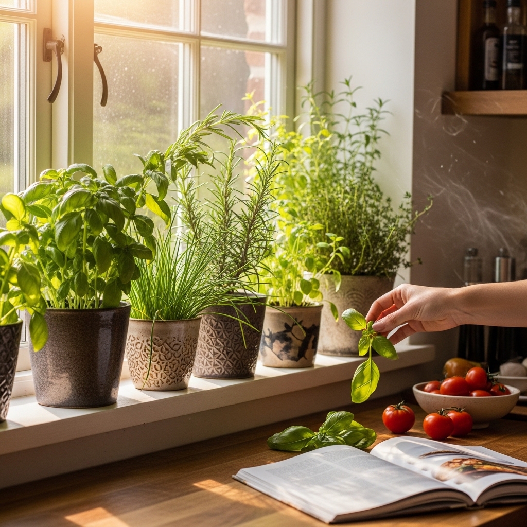 A windowsill herb garden is a practical and beautiful way to incorporate plants into your kitchen. Fresh herbs like basil, thyme, and rosemary not only add greenery but also provide culinary benefits. Optimize the sunlight by selecting the right herbs for your climate, and enjoy the delightful fragrance and flavors they bring to your cooking.