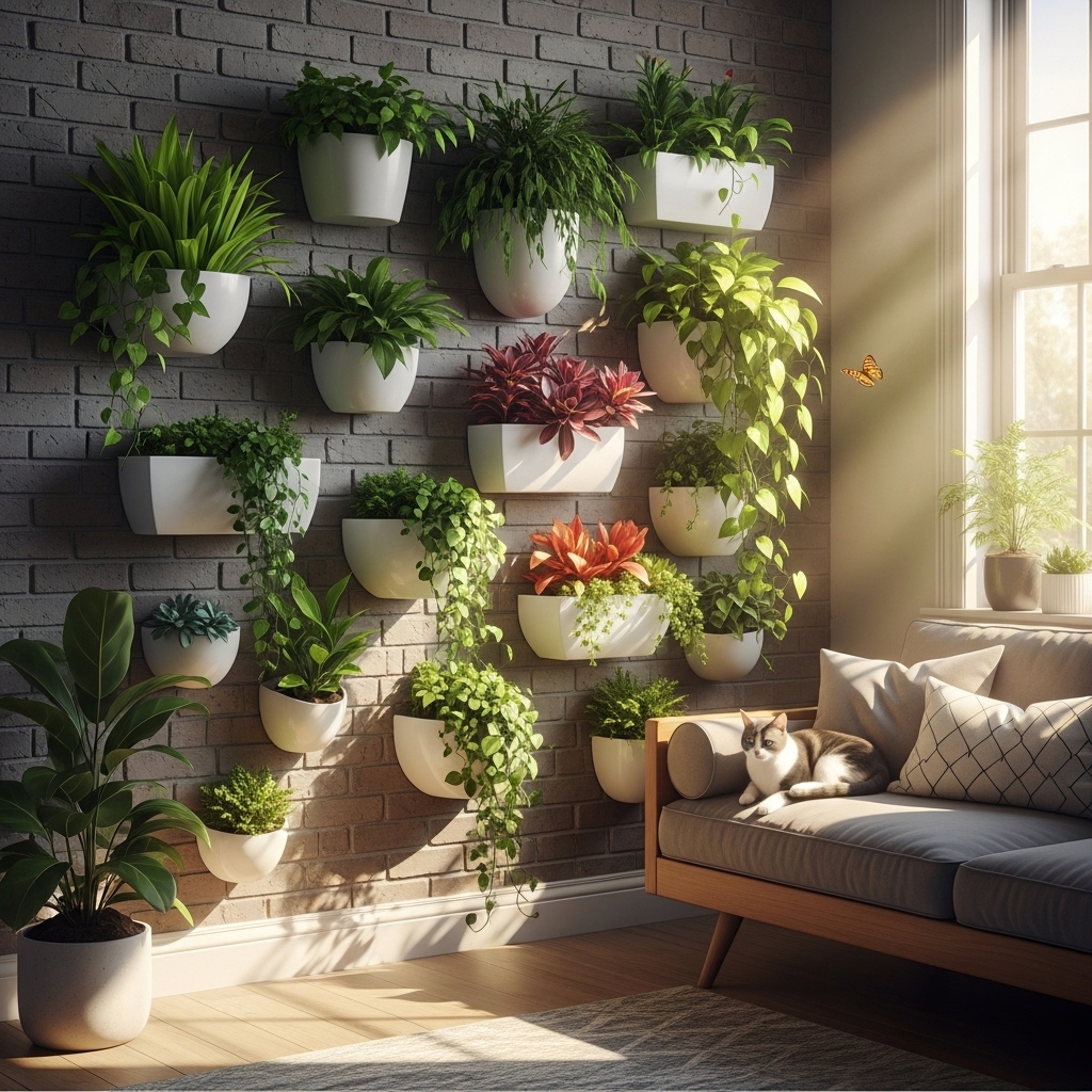 Wall-mounted planters are perfect for small spaces, offering a unique way to display plants. These can be arranged in patterns or clusters to create a living wall that becomes a statement piece in any room. Opt for low-maintenance plants like succulents or air plants to minimize upkeep while maximizing visual impact.