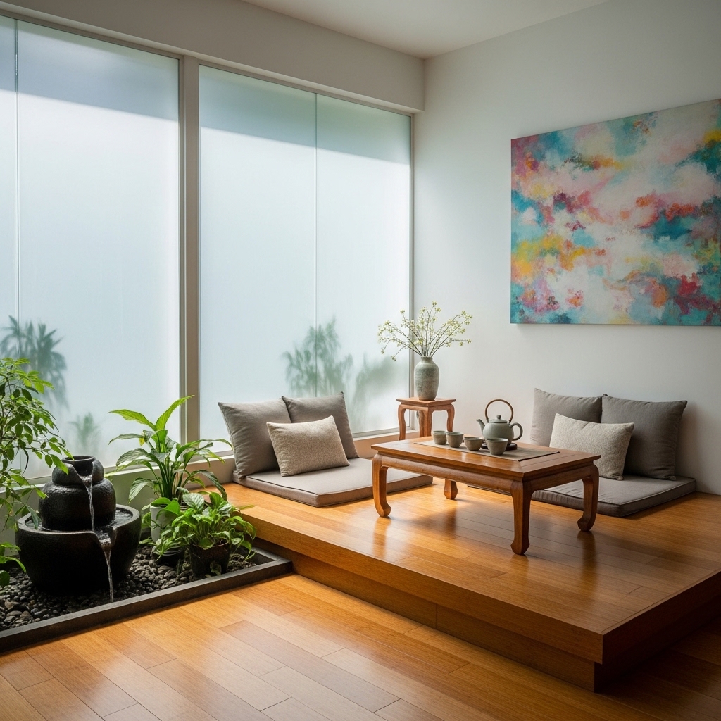 Adopting a zen minimalist layout emphasizes simplicity and tranquility. Choose a few essential pieces of furniture, such as a sleek sofa and a small coffee table, and keep decor to a minimum. Use soft, neutral colors and natural materials to create a calming environment. This layout promotes relaxation and makes the room feel more spacious.