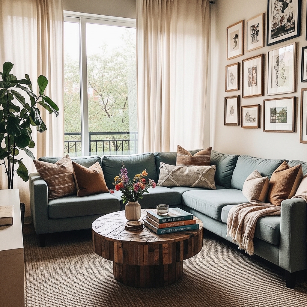 For those in studio apartments, the living room often doubles as a bedroom and workspace. Use a room divider or a bookshelf to create distinct zones while maintaining an open feel. Opt for compact, stylish furniture that can easily transition between functions. This setup emphasizes efficiency and can make the living area feel more organized and spacious.